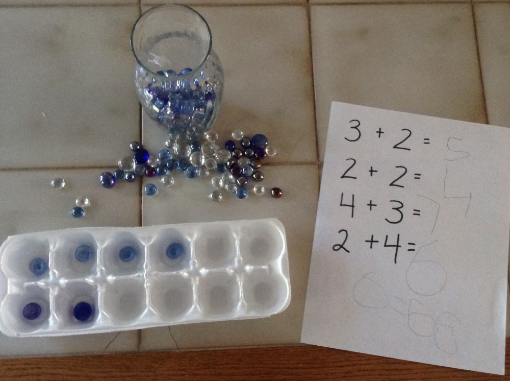 Use manipulatives to help children understand their math. I used egg carton addition activity.