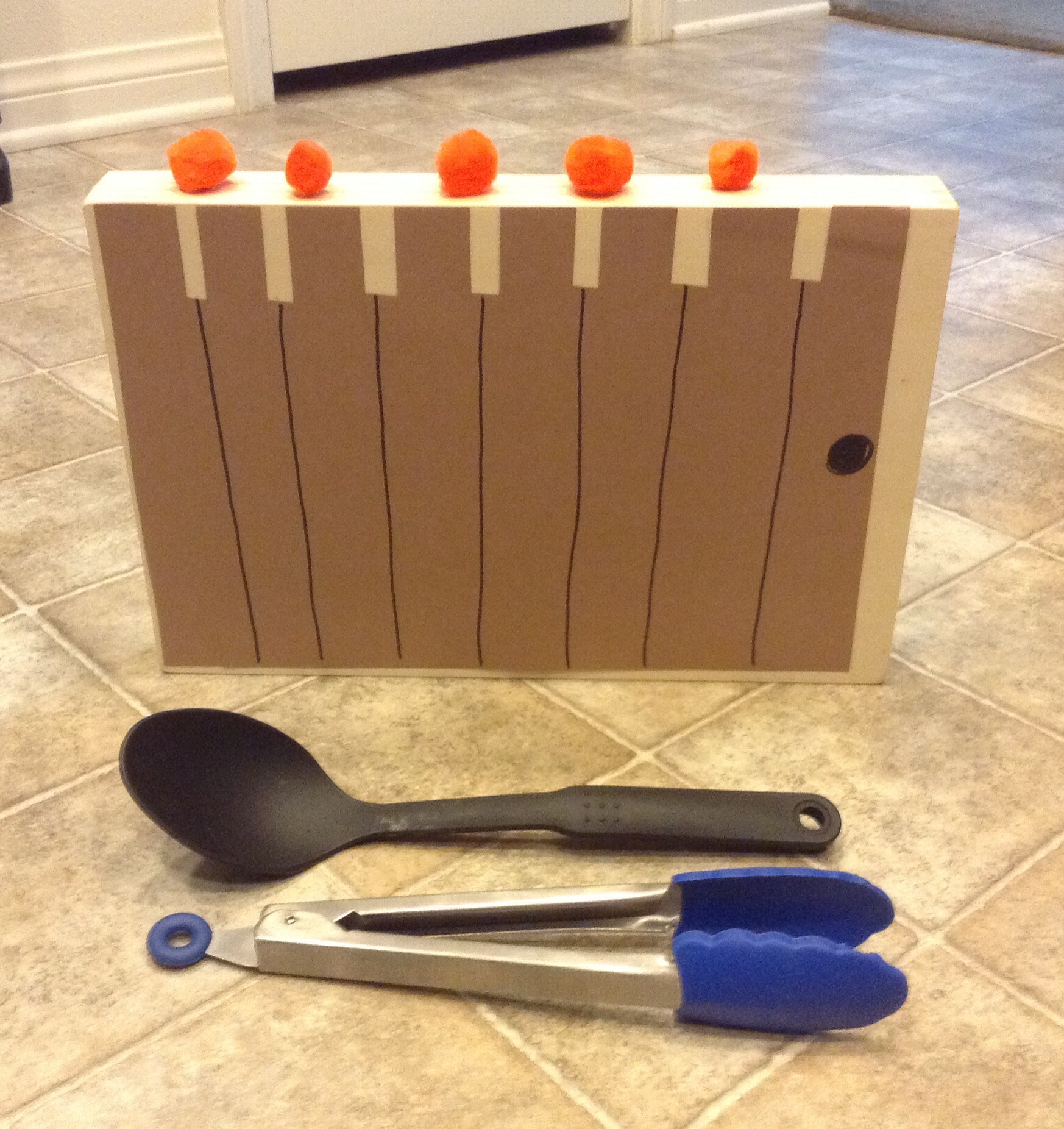 Once the “pumpkins” are on top of the “gate”, the grands pretended they were the wind, and blew the pumpkins off!