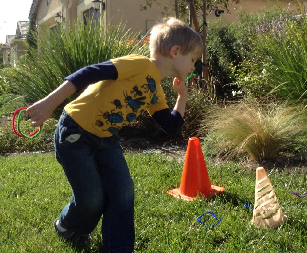 We had two sizes of cones. Kona preferred to throw the cones at the shorter cone.