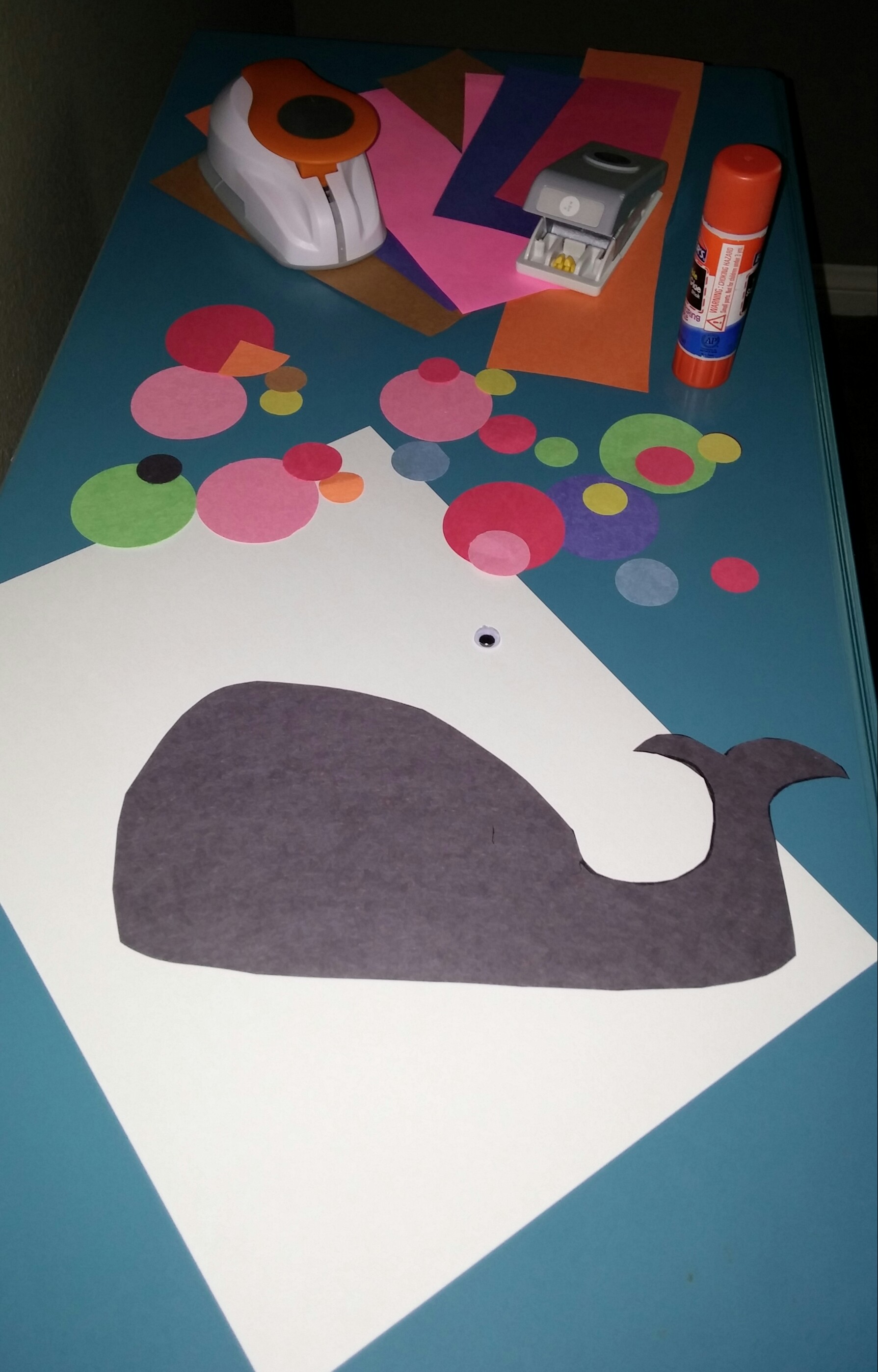 These are the materials I had ready for this art project to go with the book Elmer and the Whales.