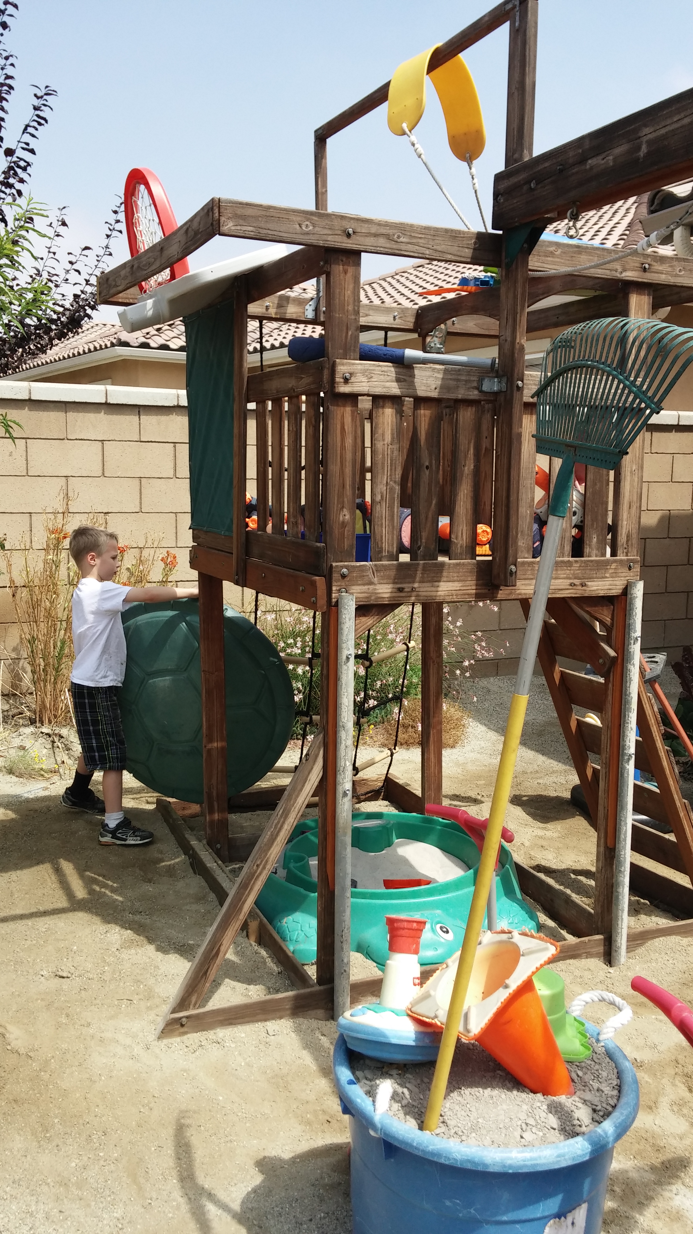 Tigger, 7, loves to use his playground set as the base for constructing all sorts of structures: pirate ships, treehouses, etc.