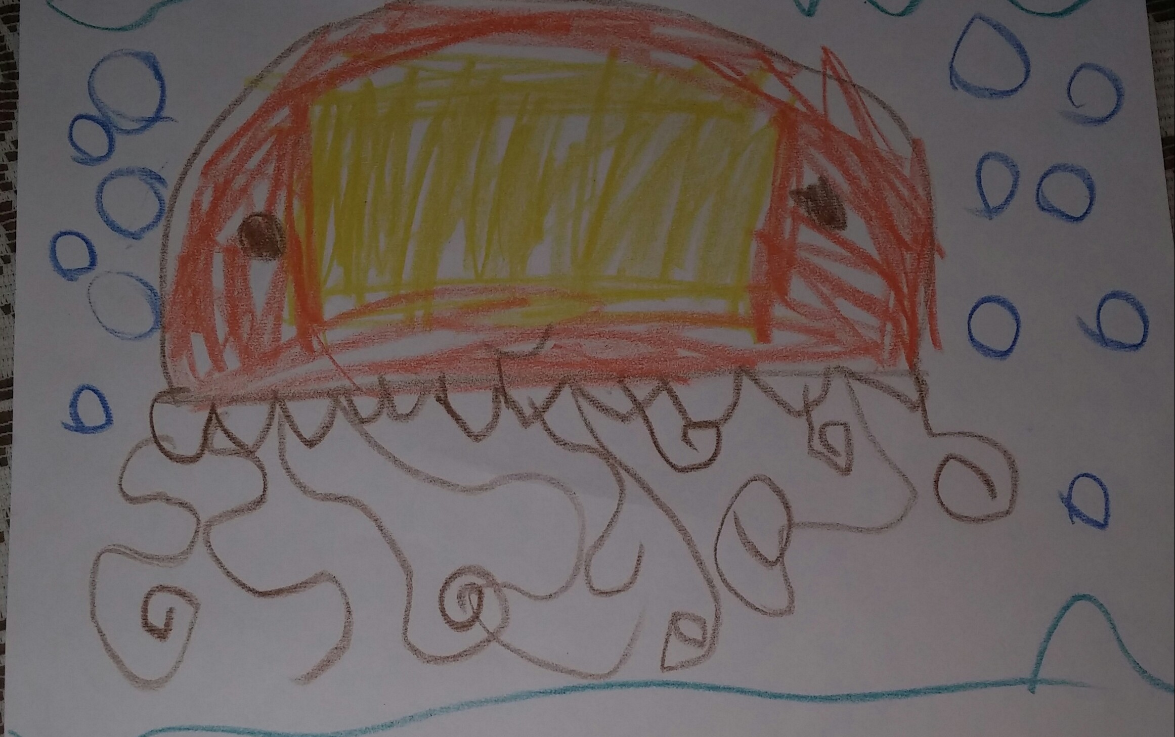 Tigger (7) decided to color his sea jelly after he finished drawing the outline.