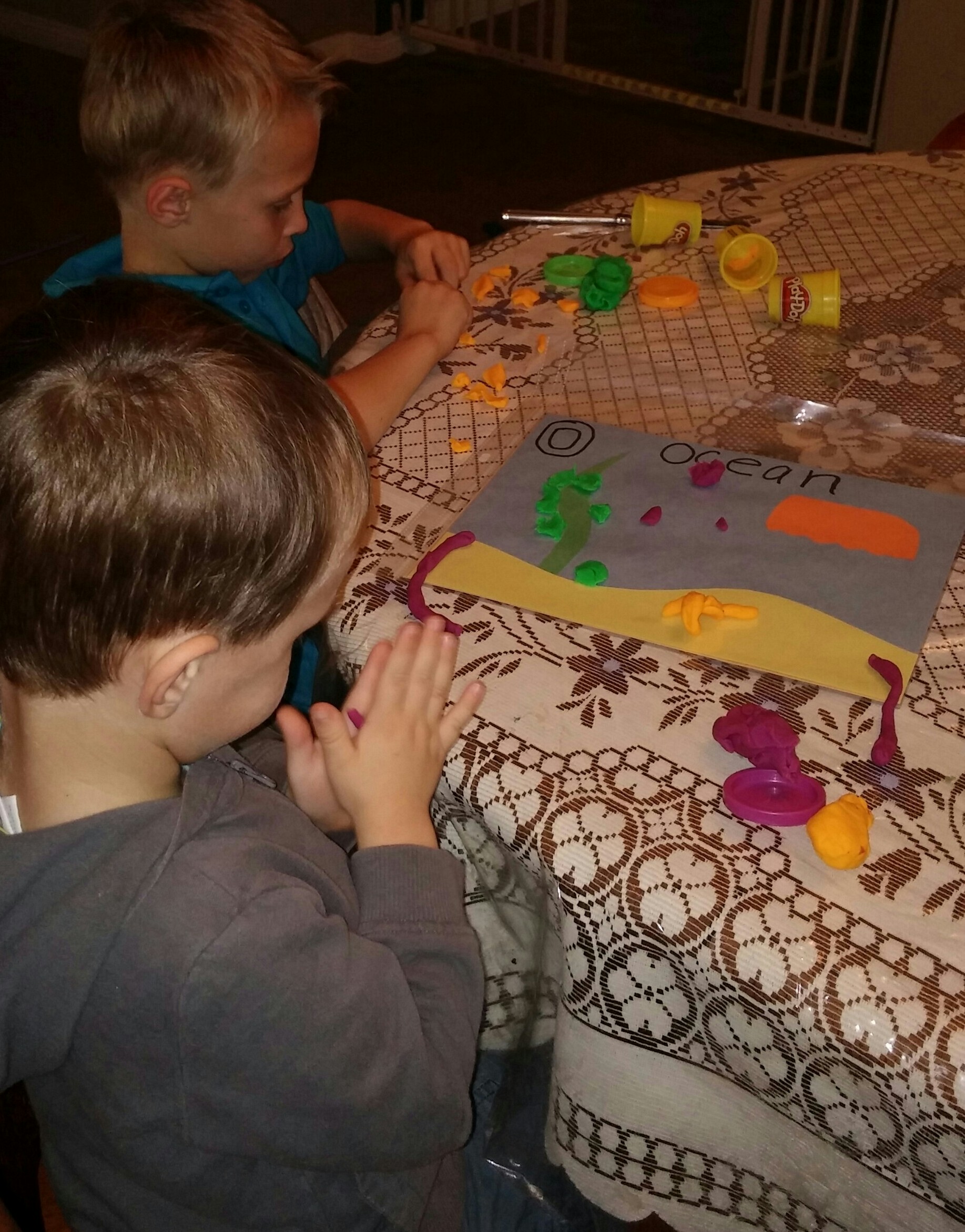 Tahoe and his older brother created all kinds of ocean life with their play dough.