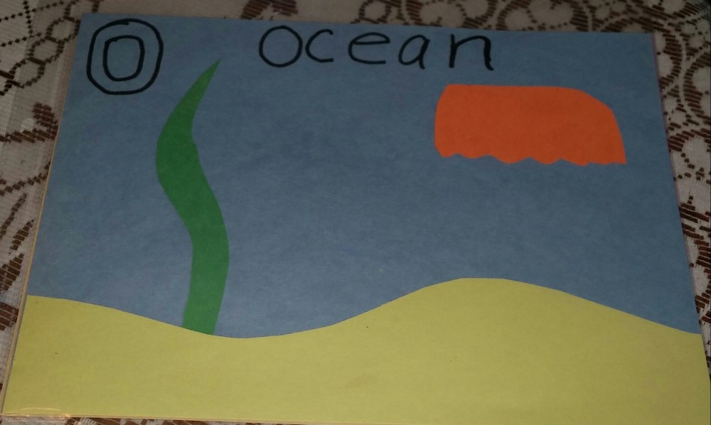 I created a play dough mat using construction paper. (I told the grands that the mat showed sand, seaweed and a sea jelly.)