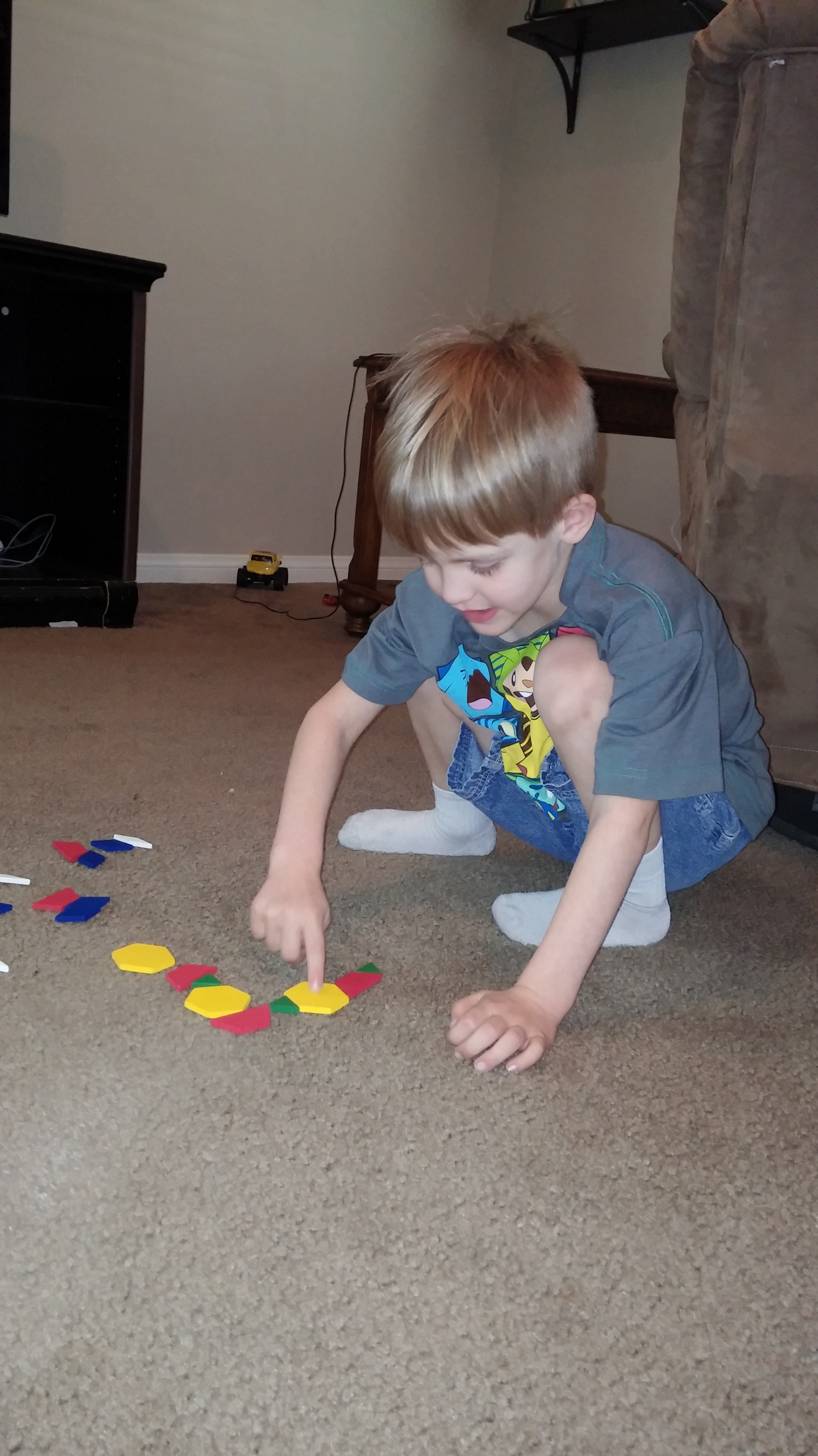Kona made several capital “L”s with his patten blocks and told me the names of each shape.