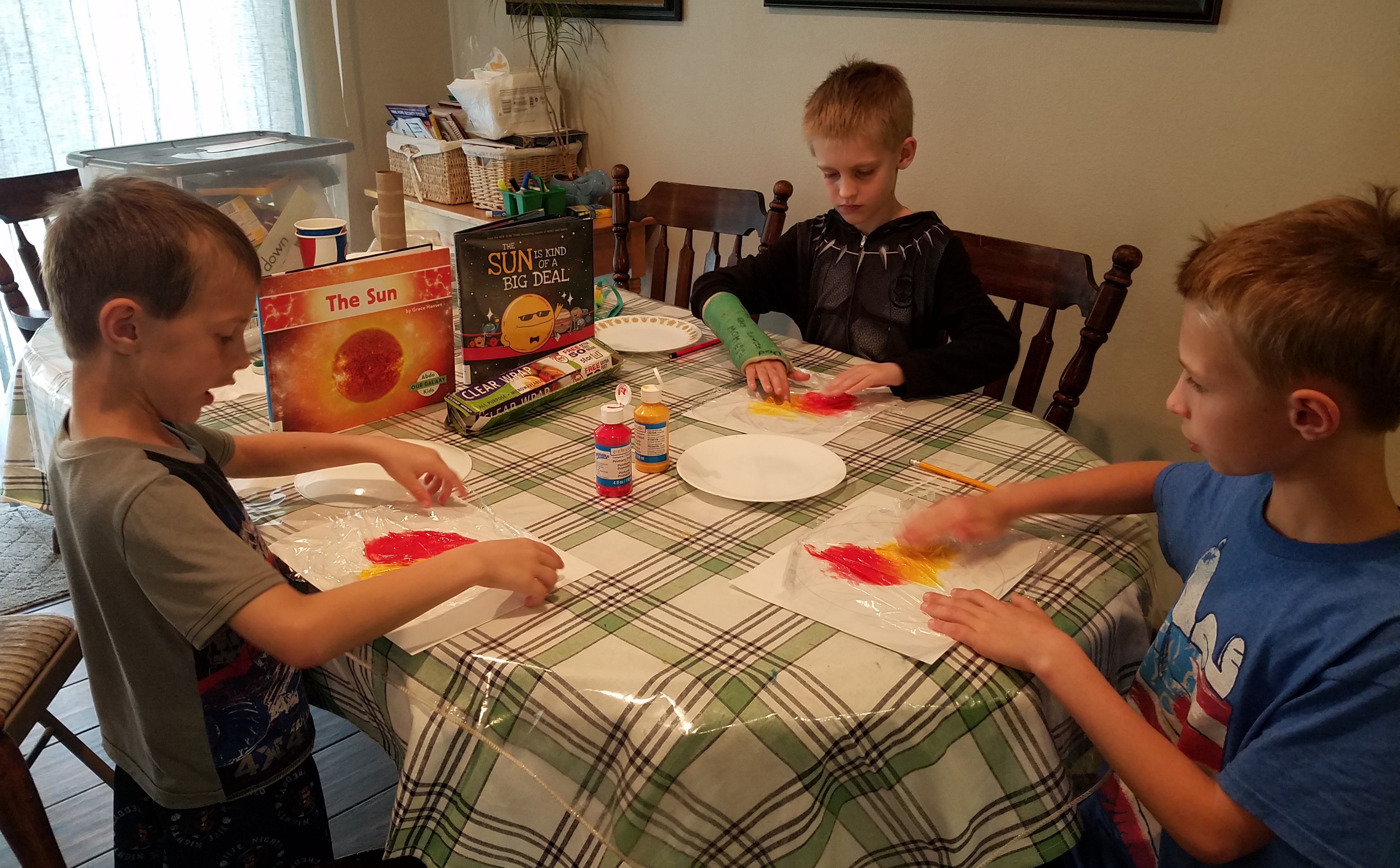 This was a great fine motor activity for the boys because they really had to work at moving the paint around with the plastic wrap on top of the paint.