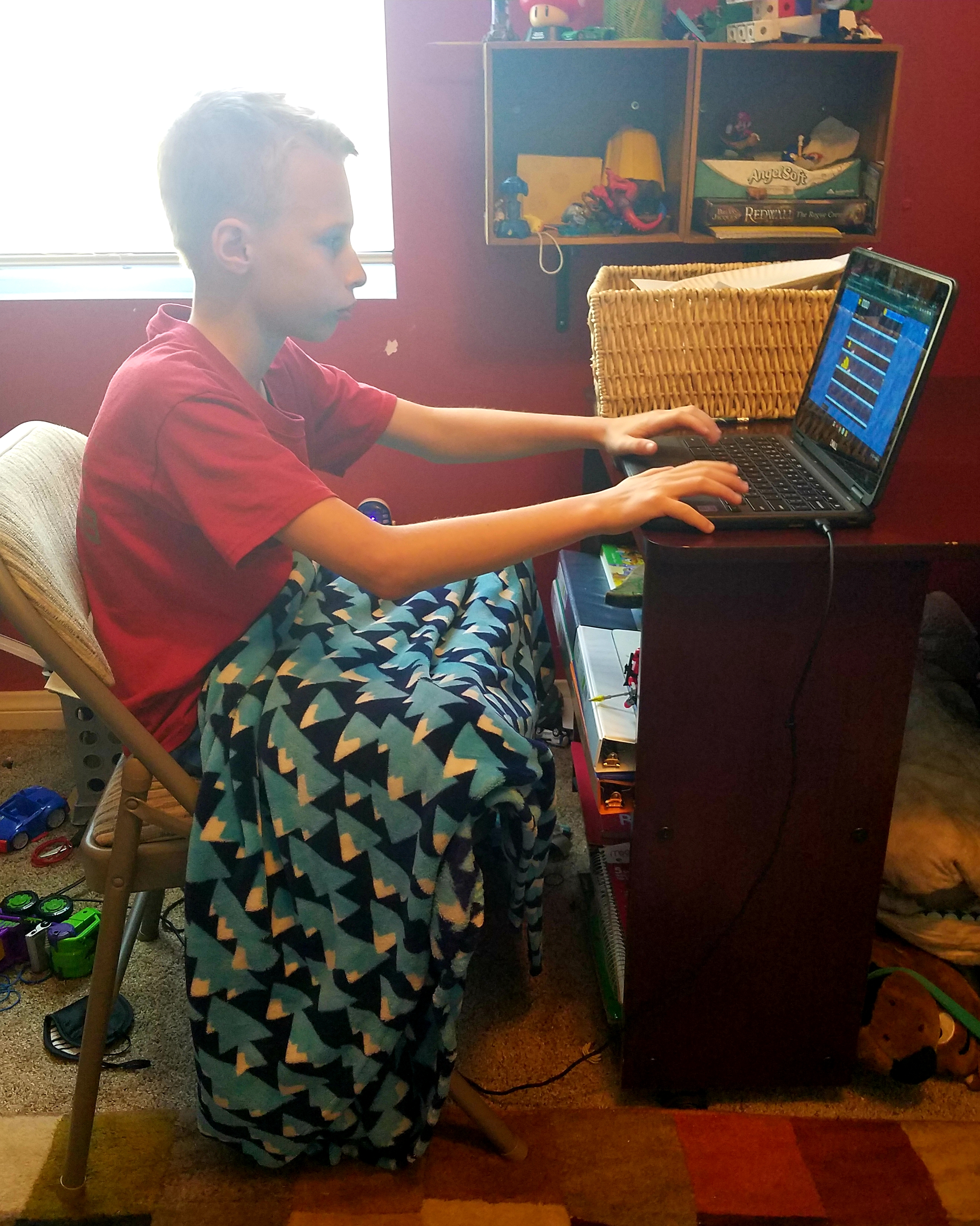 Tigger works on a diagnostic test on his first day of Distance Learning.