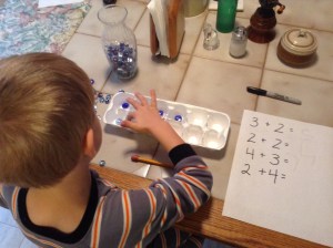Measuring: Using the Inchworm art project we created for our Spatial Intelligence, I had Tahoe and Kona measure each inchworm in inches and centimeters. Tigger worked on conversion of centimeters to meters using the book If You Were an Inch or a Centimeter and fractions using the book Inchworm and a Half (see Linguistic Intelligence).