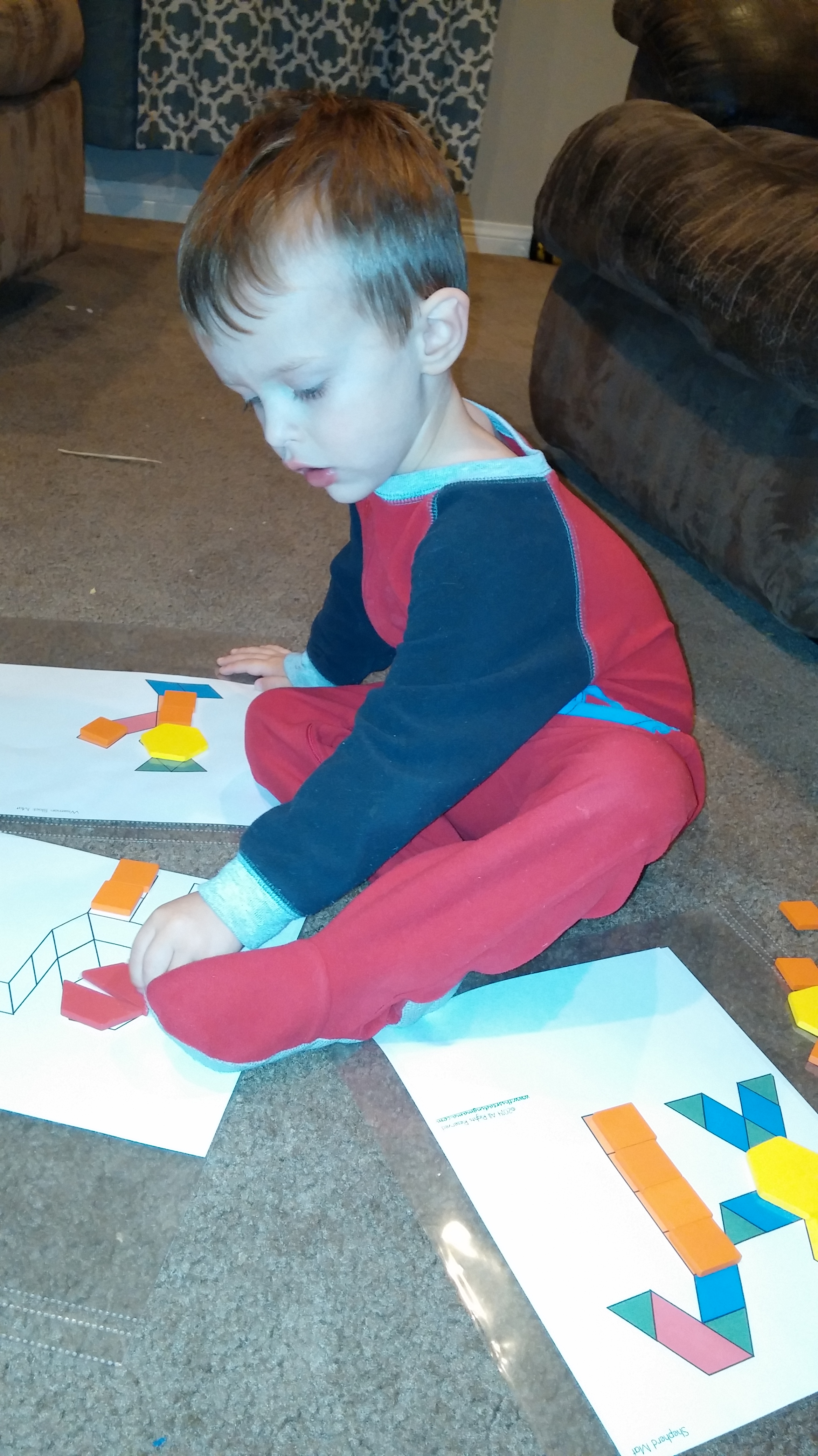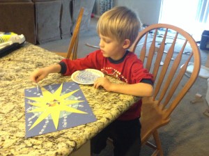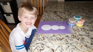 Counting activities: I had Kona count out 23 pattern blocks and make the letter “W” from them (since “W” is the 23rd letter of the alphabet). I practiced counting to 23 with Tahoe, although he still misses a few numbers once we get past “twelve”.