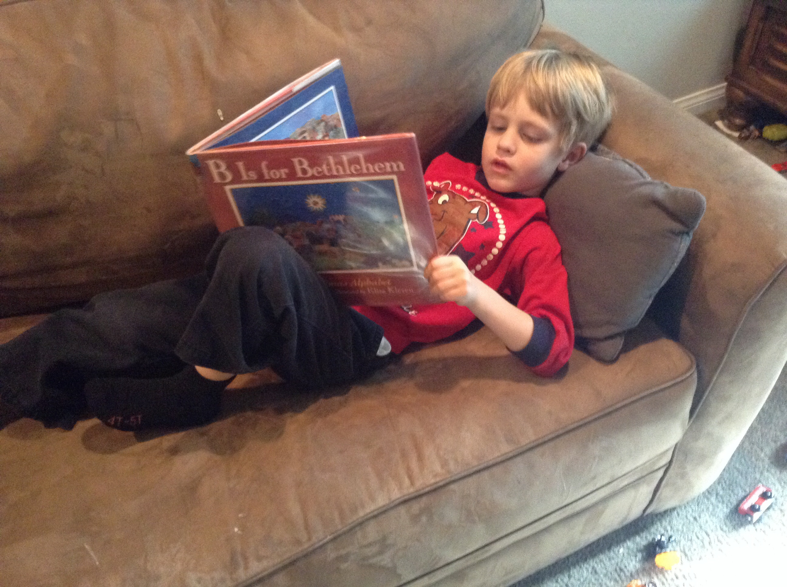 Tahoe, (3), will get the alphabet again next “school” year. He has picked up the name of a few letters this year, but most importantly, his vocabulary and fine motor skills have really improved this past year. He also loves to have books read to him, but what Tahoe really likes is to sing! My alphabet lessons for him next year will include a lot more music and nursery rhymes.